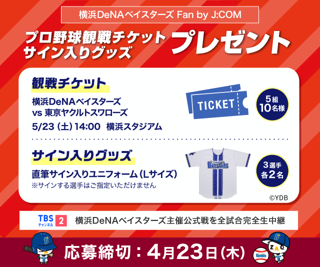 イベントJ:COMで応援プロジェクトで横浜DeNAベイスターズ選手サイングッズなどが当たる!